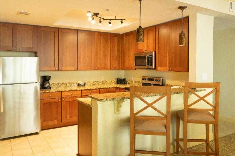 Spacious three-bedroom, three-bath villas designed for families and friend groups to vacation together comfortably. Everyone gets their own bedroom and bathroom, while the kitchen, dining, living area and private balcony give you room to gather.